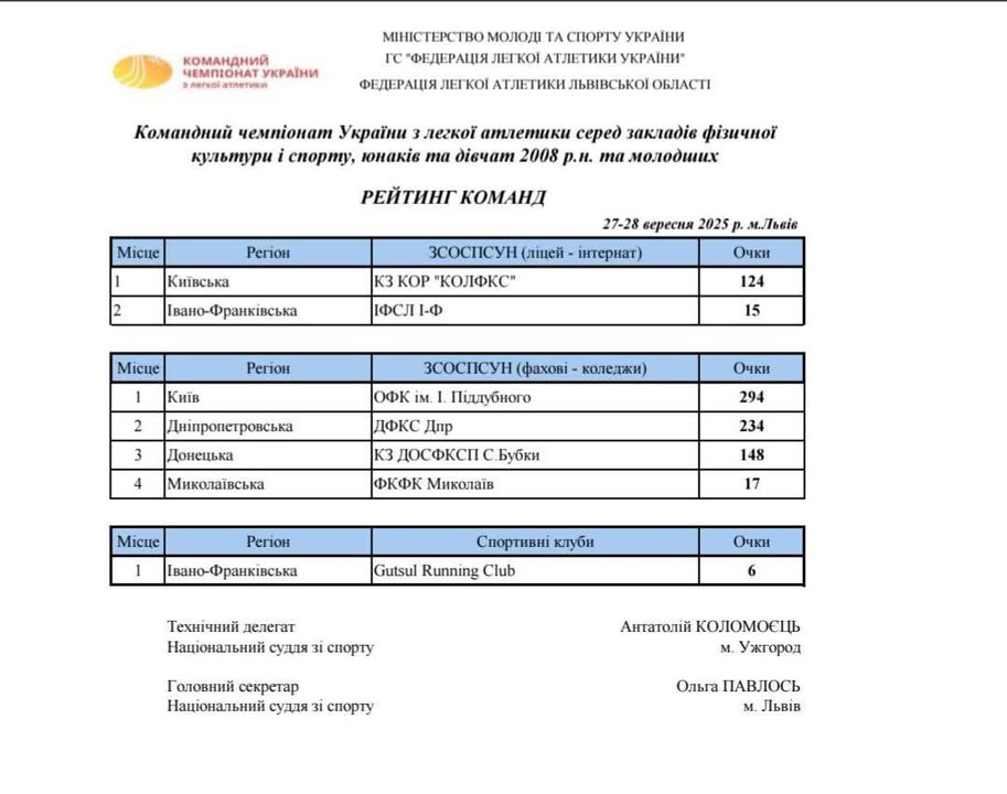 🏆 Командний чемпіонат України з легкої атлетики серед команд закладів фізичної культури і спорту (юнаки U18)